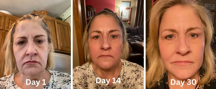 Needless to say, I was skeptical about seeing any real improvement. But I took the leap of faith and ordered it anyway... It only took a couple days to arrive and I couldn't wait to try it I enjoyed how it made my skin feel, but I hadn’t noticed much difference in sagging and lines in the first few days...